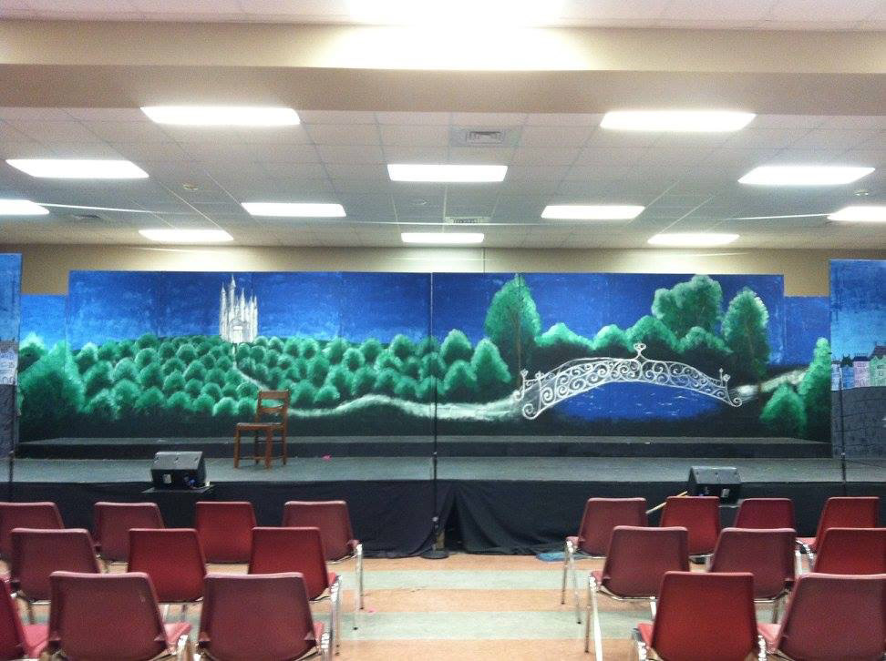 This Cinderella mural was created for The Actor's Attic community theater in Waterloo, IL as part of their Musical-In-A-Week summer camp programs! I was given four days to design, create, and paint the backdrop for the musical, only to repaint it in the next week for the next production! I was the sole set designer and painter for the Actor's Attic for two summers in a row, and it was an amazing experience to grow and learn from!
