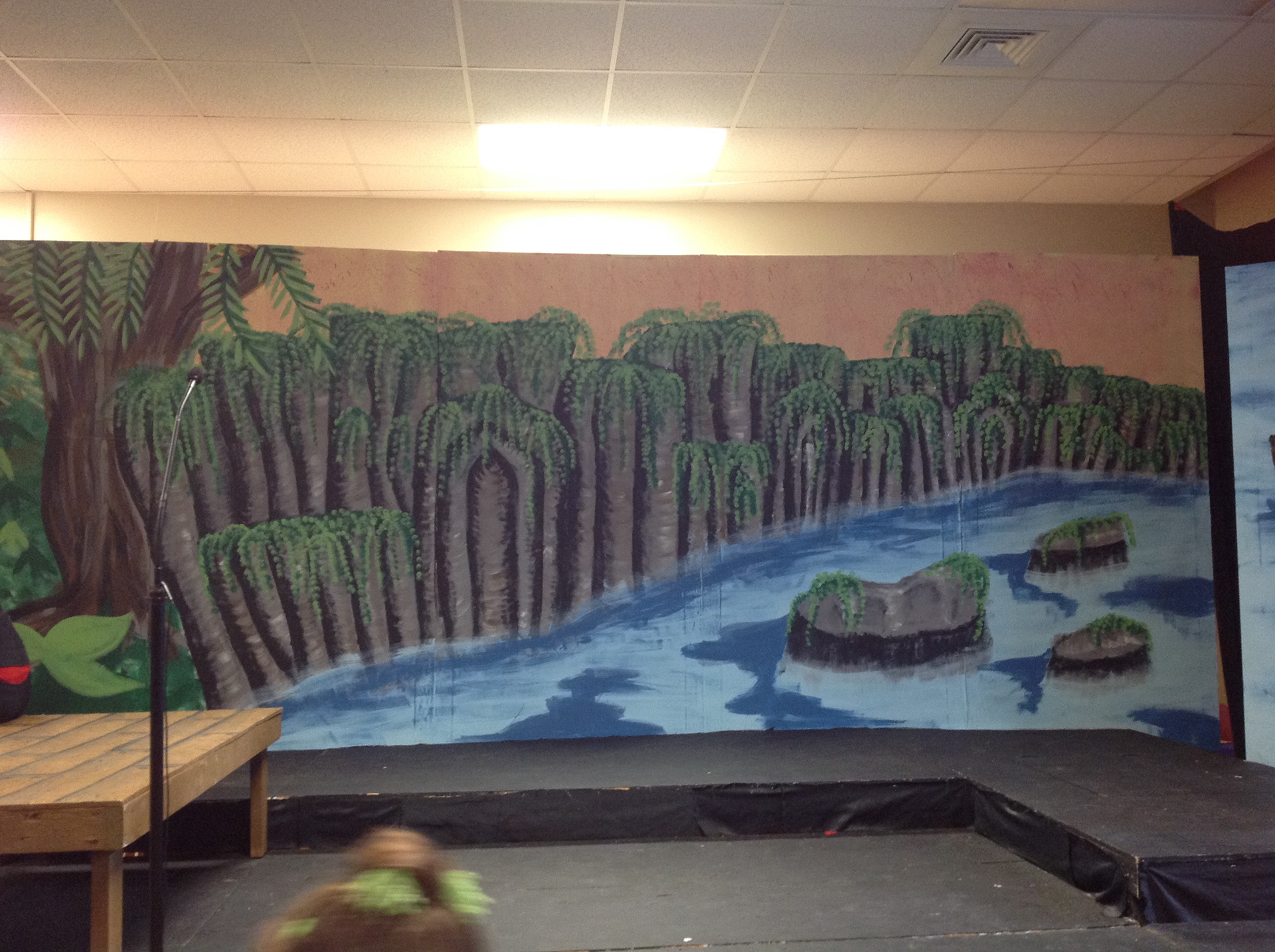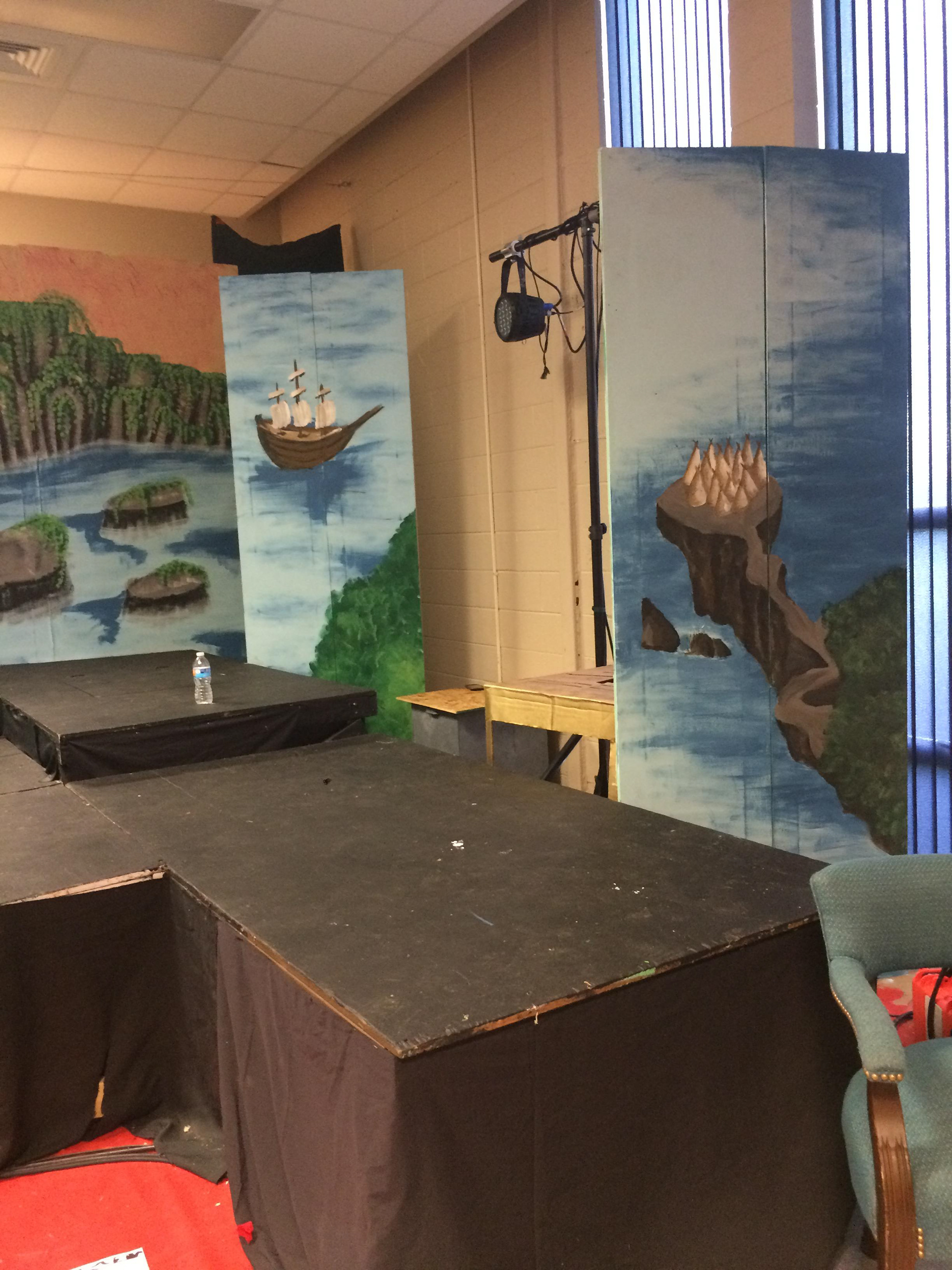 This Peter Pan mural was created for The Actor's Attic community theater in Waterloo, IL as part of their Musical-In-A-Week summer camp programs! I was given four days to design, create, and paint the backdrop for the musical, only to repaint it in the next week for the next production! I was the sole set designer and painter for the Actor's Attic for two summers in a row, and it was an amazing experience to grow and learn from!