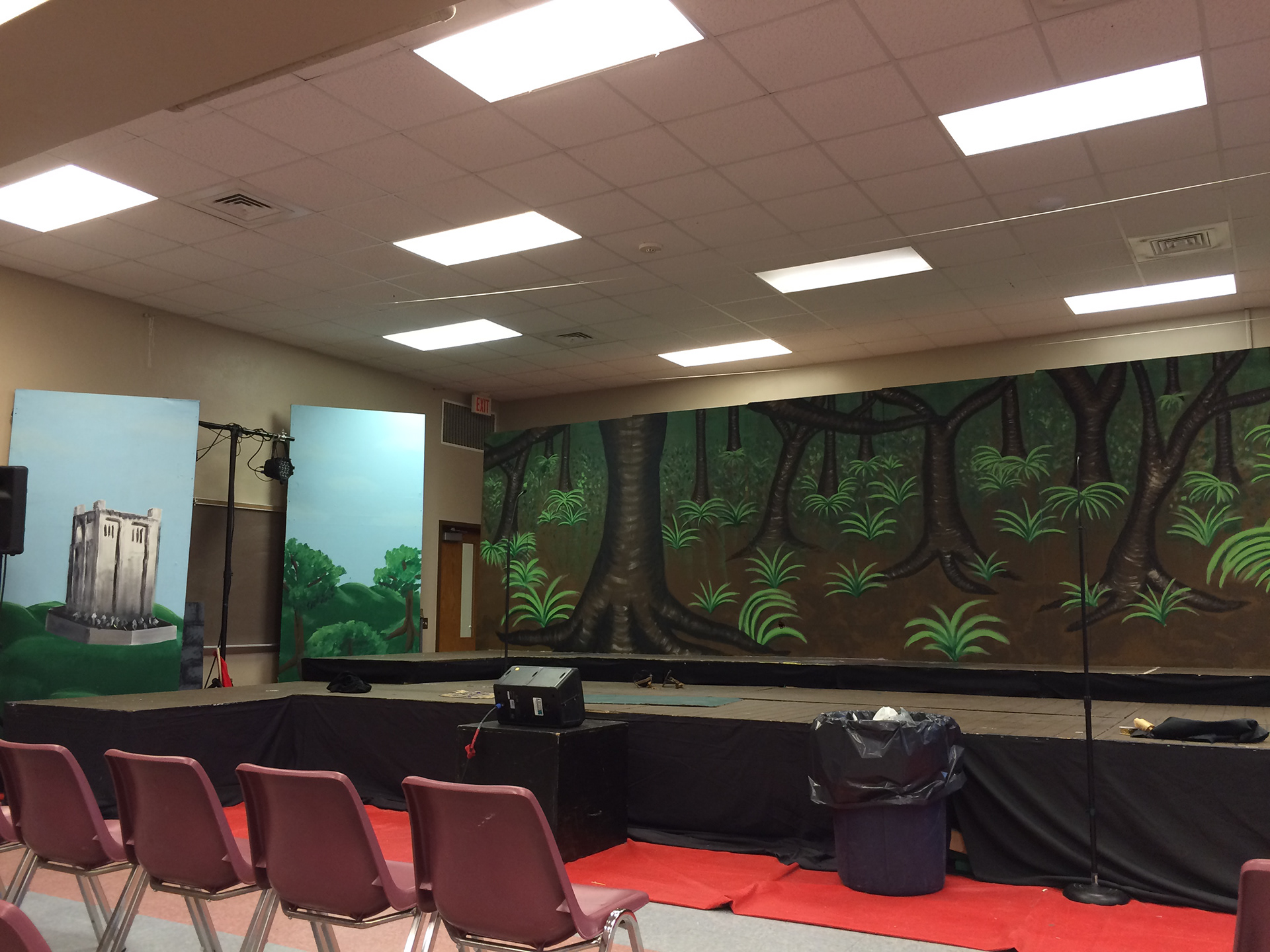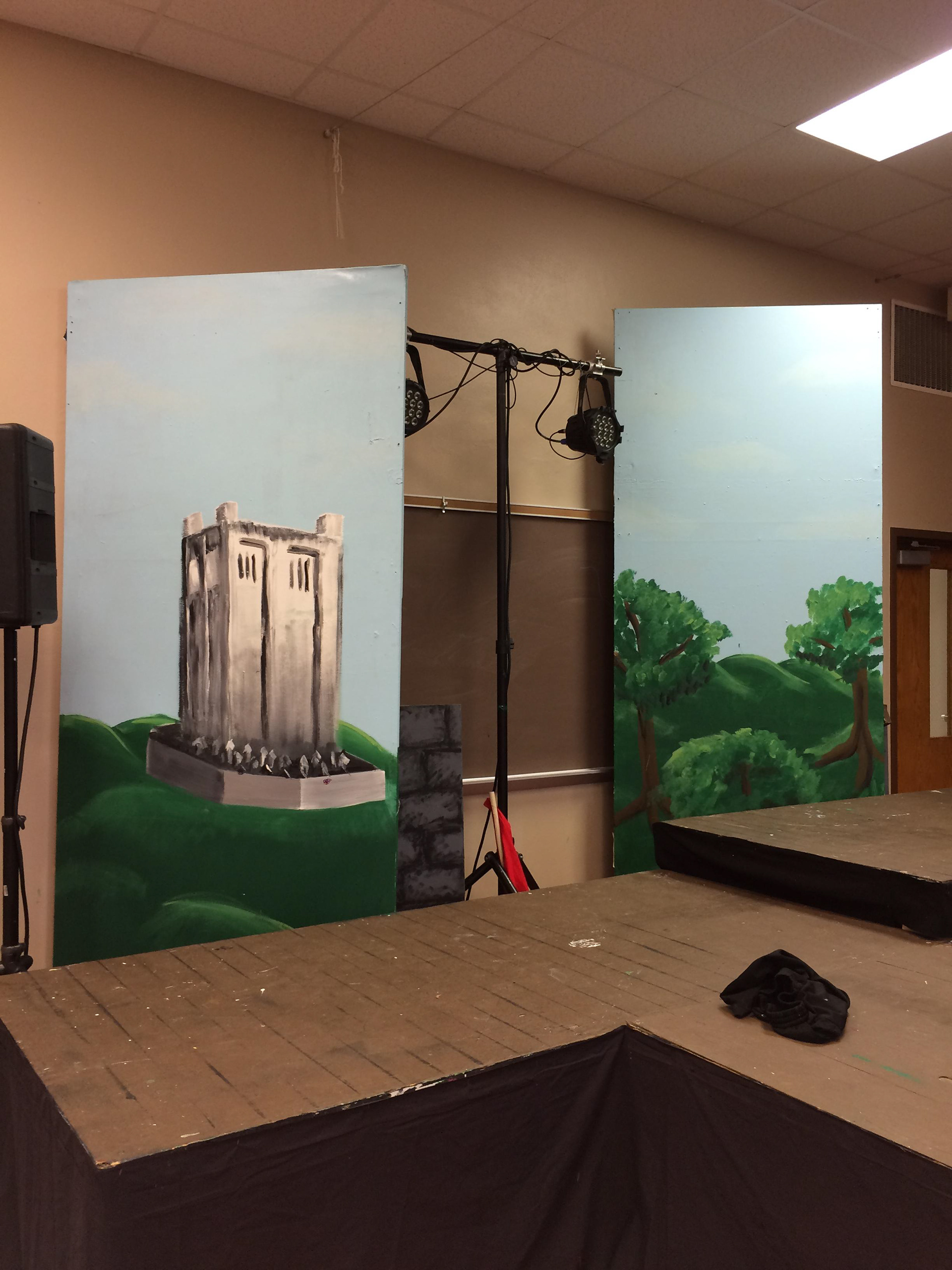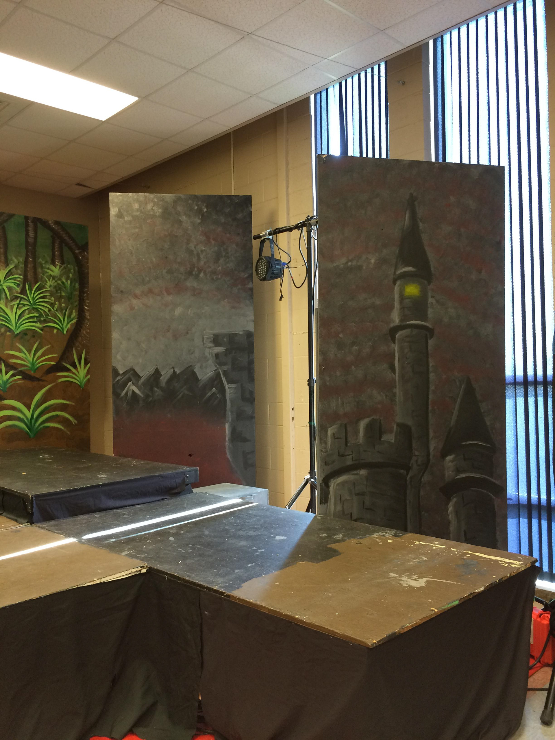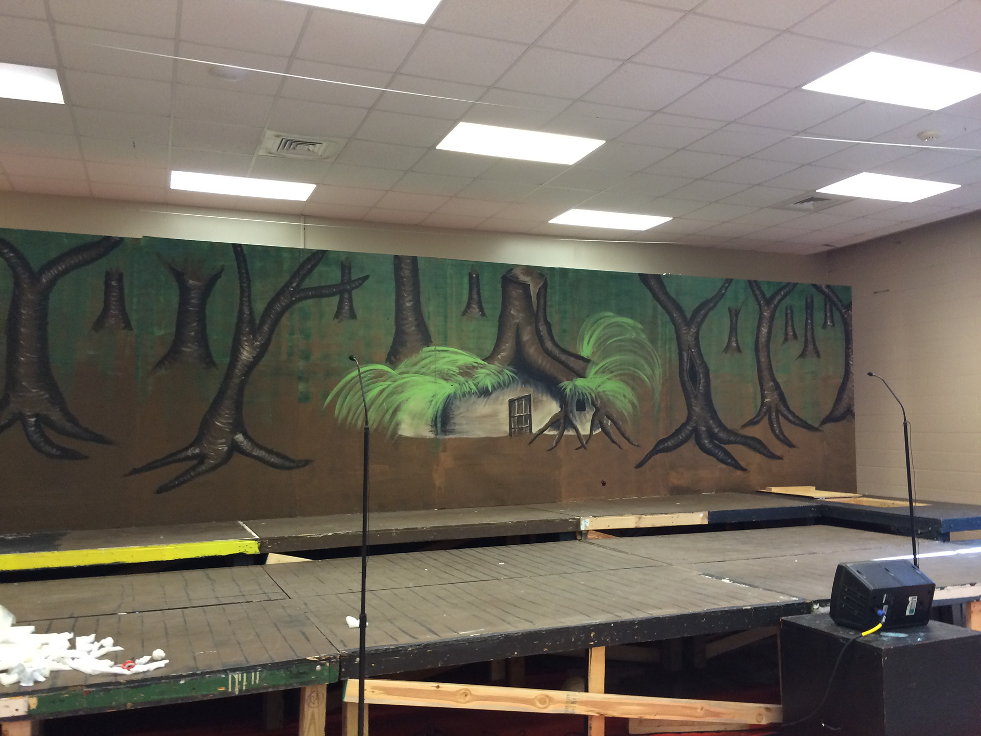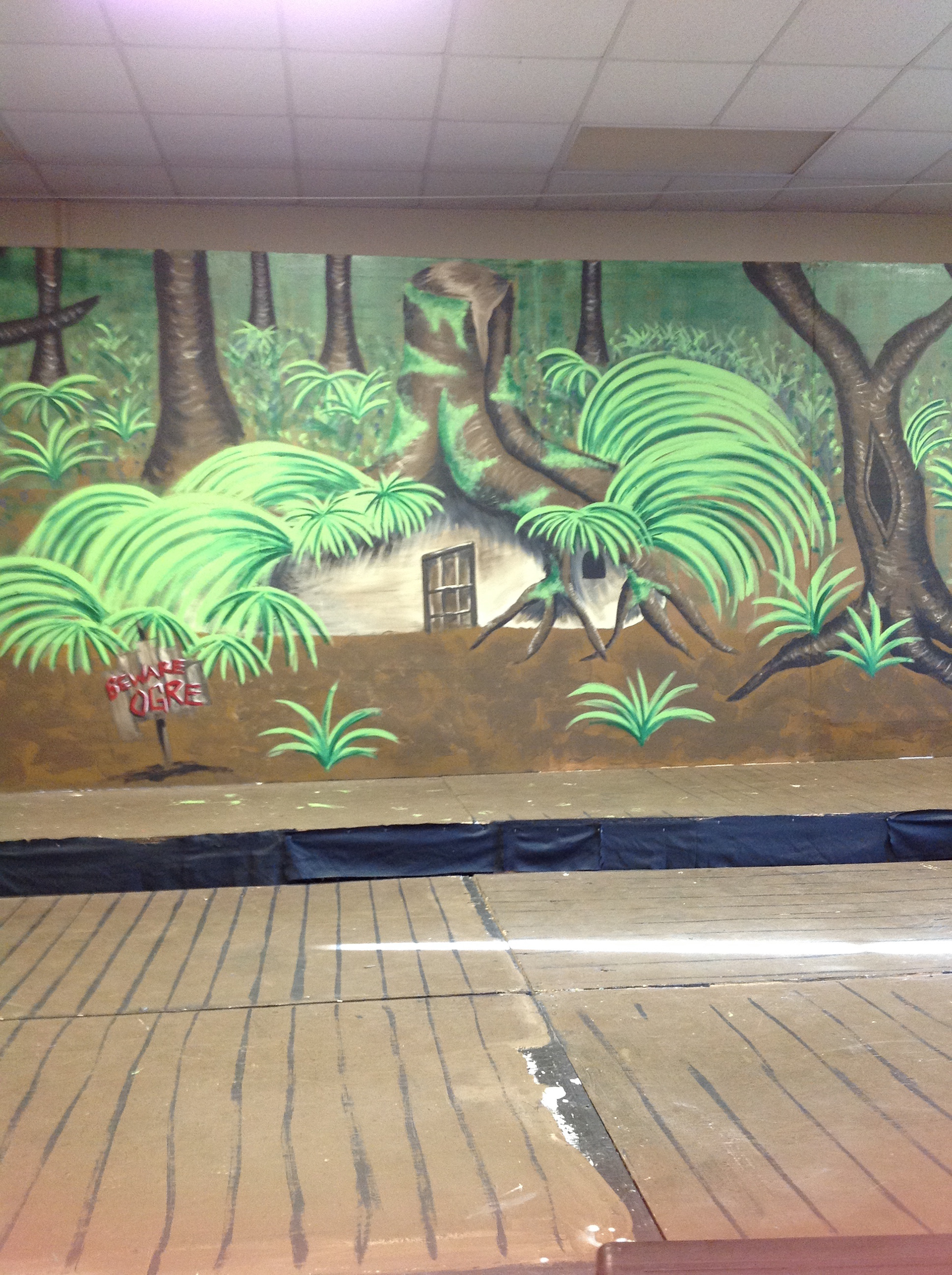 This Shrek mural was created for The Actor's Attic community theater in Waterloo, IL as part of their Musical-In-A-Week summer camp programs! I was given four days to design, create, and paint the backdrop for the musical, only to repaint it in the next week for the next production! I was the sole set designer and painter for the Actor's Attic for two summers in a row, and it was an amazing experience to grow and learn from!