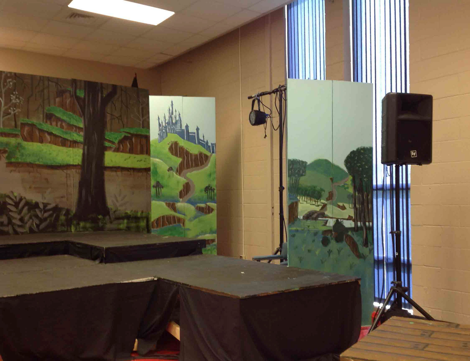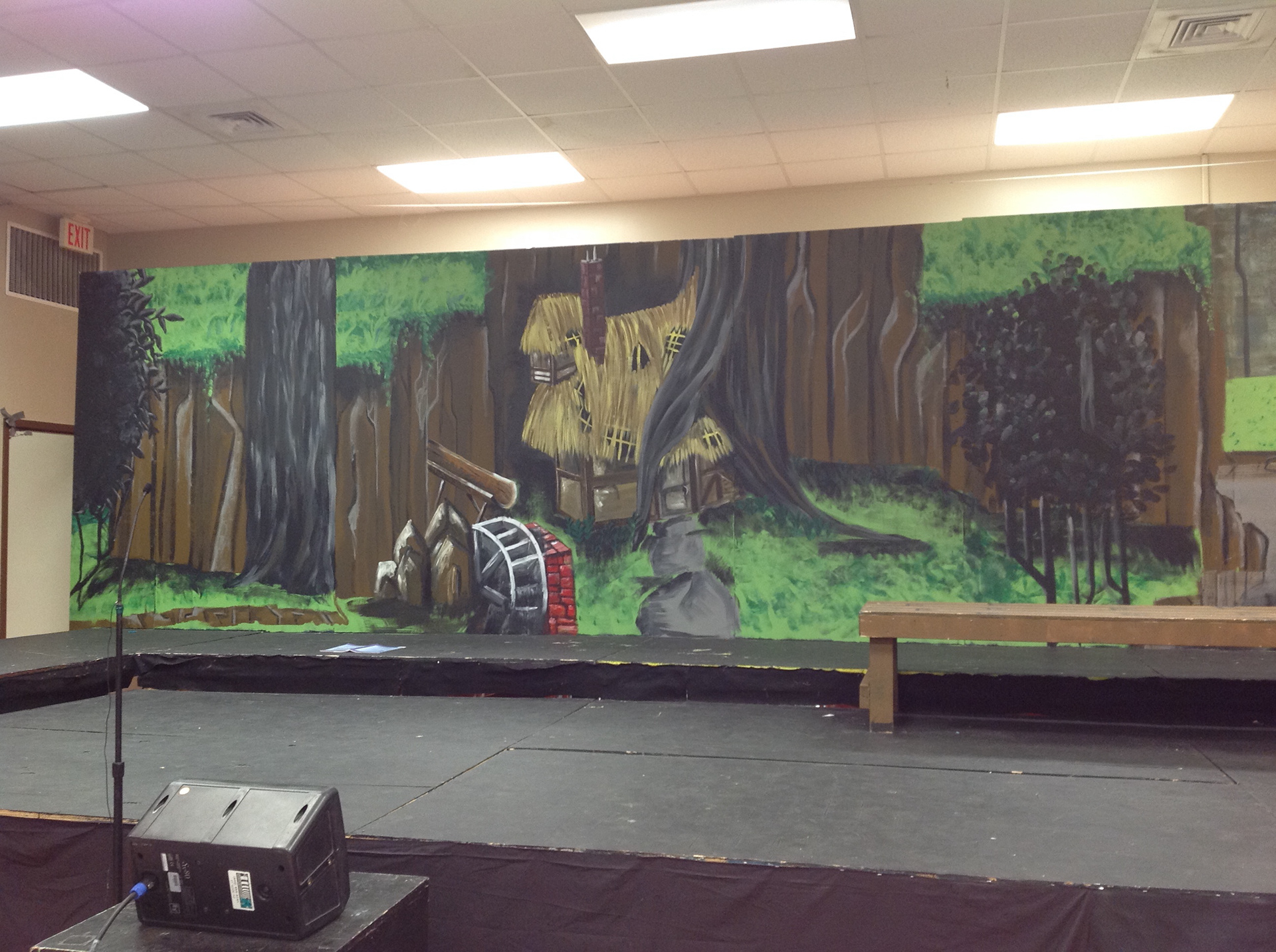 This Sleeping Beauty mural was created for The Actor's Attic community theater in Waterloo, IL as part of their Musical-In-A-Week summer camp programs! I was given four days to design, create, and paint the backdrop for the musical, only to repaint it in the next week for the next production! I was the sole set designer and painter for the Actor's Attic for two summers in a row, and it was an amazing experience to grow and learn from!